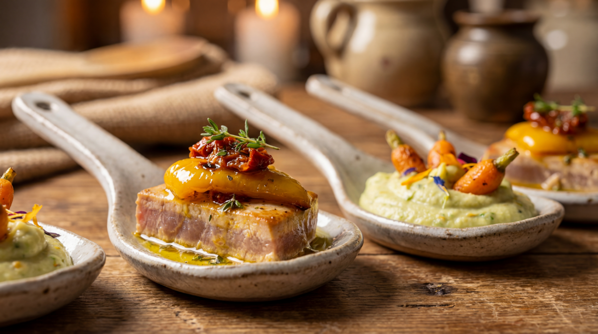 Il y a des soirs où l’on a simplement envie de sortir de jolies cuillères du placard, d’y glisser quelque chose de savoureux et d’appeler cela l’apéritif. Ce jour-là, j’avais sous la main une boîte de thon, quelques légumes, et surtout très peu de temps devant moi.