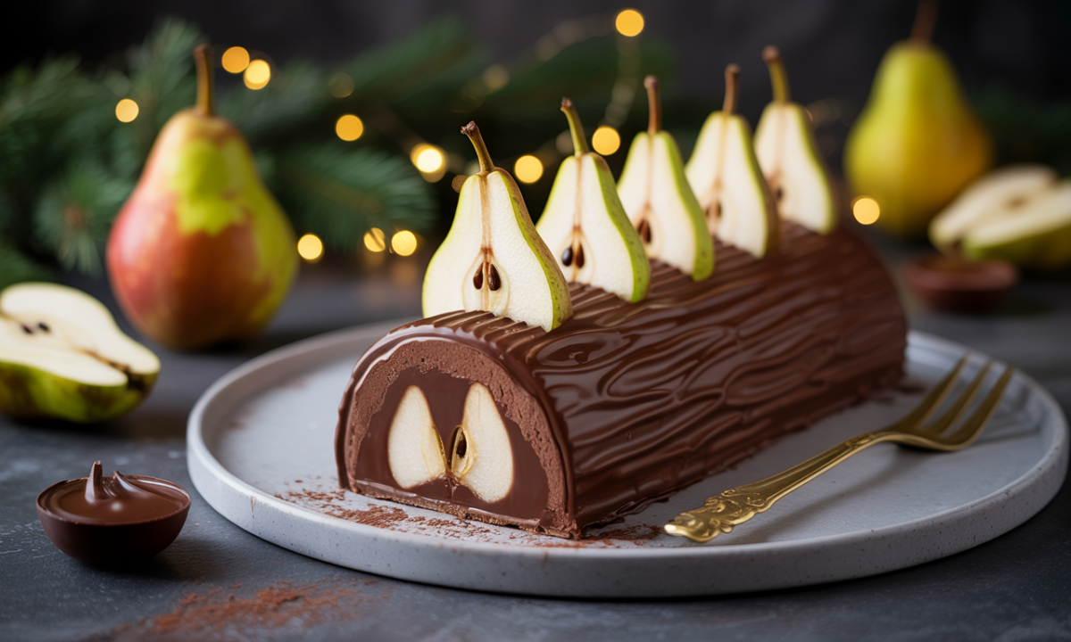 Et puis, entre vous et moi, la combinaison poire-chocolat, c’est un grand classique que je ne me lasse jamais de déguster. Ça apporte un équilibre doux-amer, fruité, intense… Bref, Noël avec cette bûche, c’est du sérieux, et vos invités vont en redemander, promis !