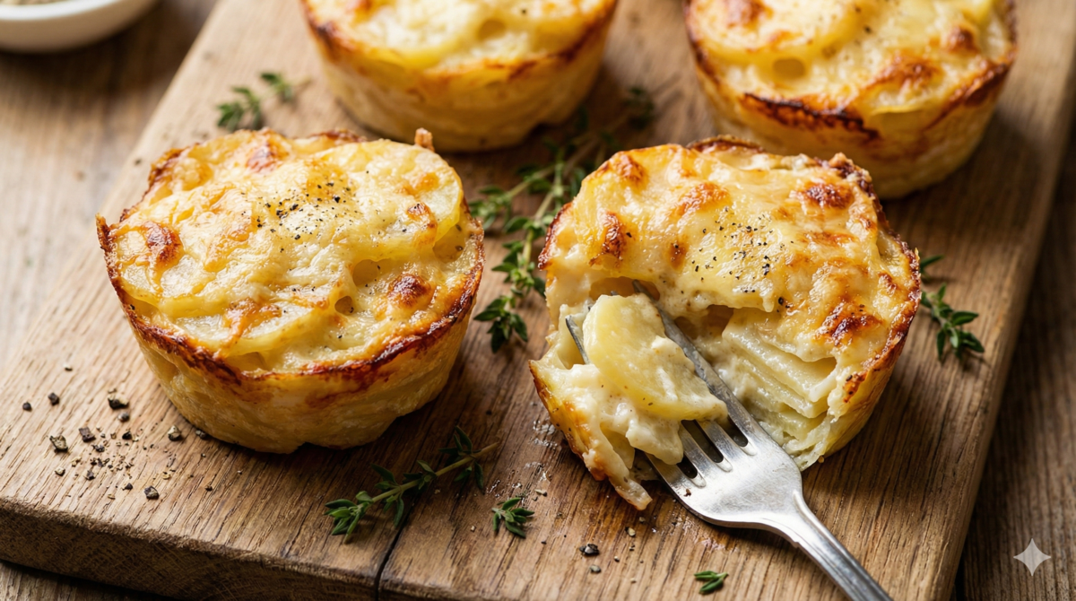 Imaginez de petits gratins dauphinois individuels, bien ronds, dorés sur les bords, avec un cœur tendre et crémeux. Présentés en forme de muffins, ces mini gratins apportent immédiatement une touche raffinée à vos plats de fête, tout en conservant l’esprit réconfortant de la cuisine familiale.